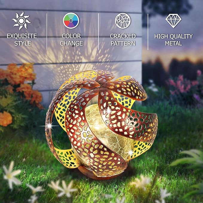 • Moroccan-Inspired Design: Introducing our latest addition to the solar lights outdoor, featuring a captivating Moroccan-style hollow cracked glass design. This intricate Moroccan-Inspired pattern adds a touch of exotic elegance to your outdoor space, creating mesmerizing light patterns that dance around your garden.