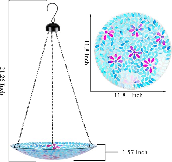 • Easy To Use & Clean: Simply fill the mosaic bowl with water or food, and hang it outdoors to attract birds to enjoy. The mosaic birdbath is easy to clean and store, making it a convenient addition to your outdoor space
