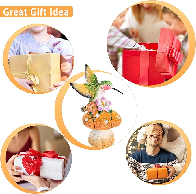 • Garden Sculptures & Statues:The Hummingbird is standing on mushroom which are entangled by vine and flowers. The item are painted in natural color, adding some mud appearance and looks real in the garden