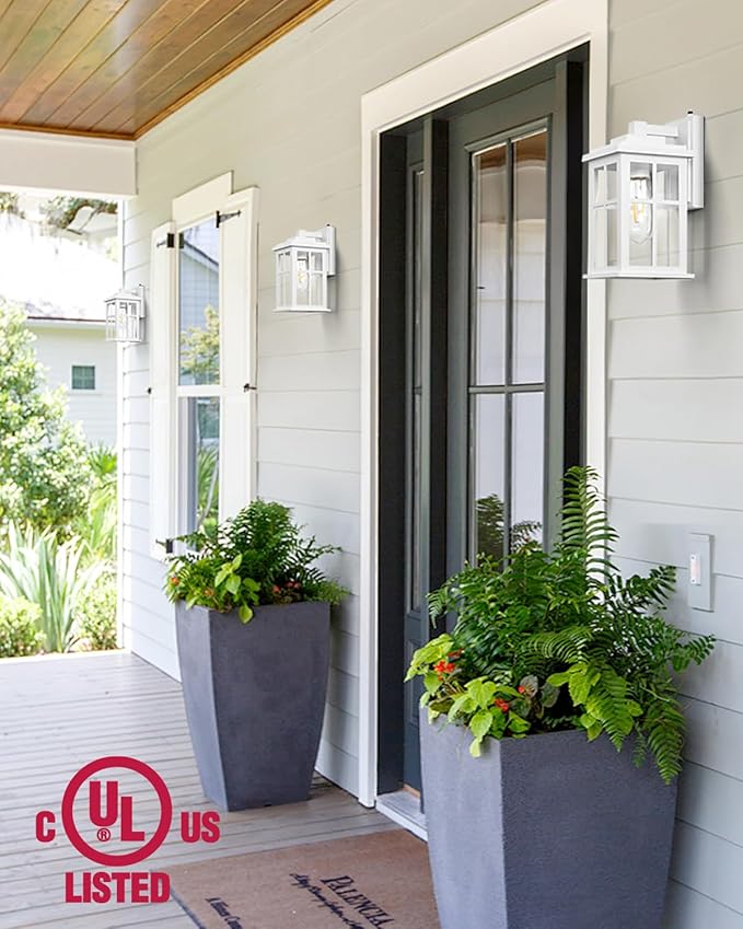• 👍【High-Quality Construction & Tempered Glass】Our outside lights for house feature a sturdy die-cast Aluminum frame with a white matte finish, ensuring superior craftsmanship. These waterproof, anti-rustic, and weather-resistant wall sconces are built to last. Unlike fragile glass panels, our outdoor wall lights for house are equipped with high-tempered seeded bubble glass that is strong and durable. The seeded bubble glass enhances the light, creating a warm and inviting atmosphere in your house.