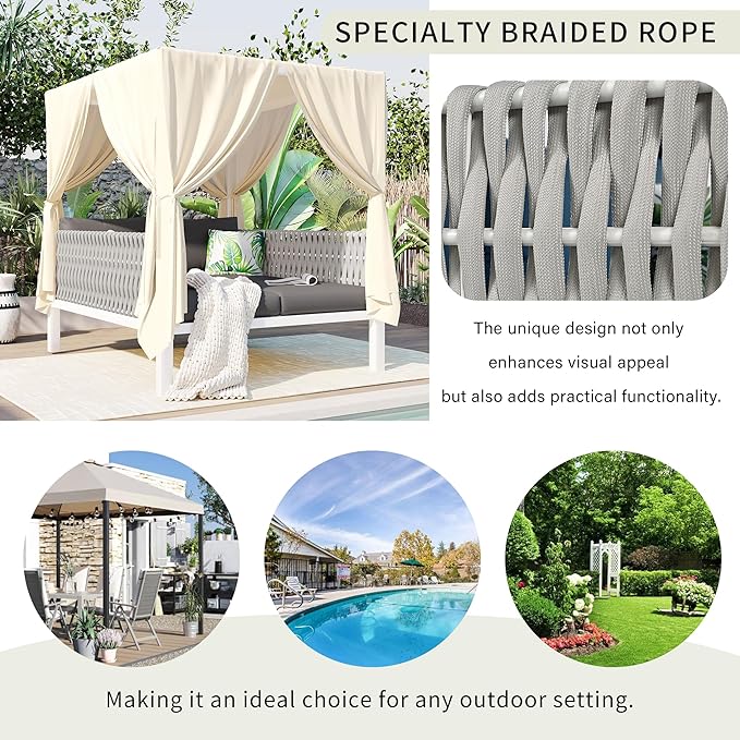 • [Outdoor Patio Sunbed with Curtains]This outdoor sun lounger features a canopy for shade, thick cushions, and pillows for added comfort. Its elegant design enhances the aesthetic appeal of any outdoor space.