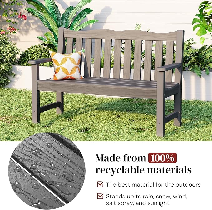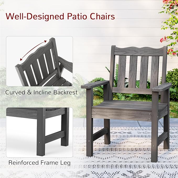 Stoog 3 Piece Outdoor Bench & Outdoor Chairs Set, All-Weather HIPS Patio Furniture Set, Include 1 Patio Bench and 2 Patio Chairs, Grey