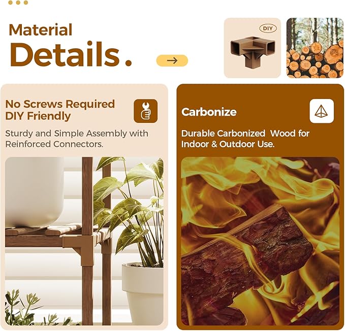 • Durable and Sturdy:This plant stand requires no screws, making it perfect for DIY enthusiasts. Utilizing the clever application of the triangular stability principle, it enhances stability. Additionally, plastic joints reinforce the structure of the plant stand, ensuring its durability.