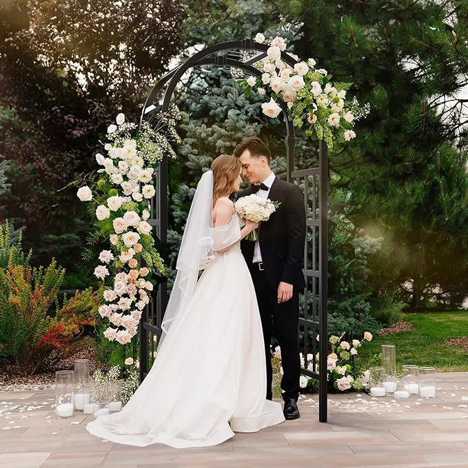 • Elegant Arch: Elegant white is suitable for weddings, classy parties and just about any occasion. Whether standing alone or covered with climbing vines and flowers, these outdoor arch add a striking focal point to your event. Adding grace and prominence to any outdoor venue with the Arbor features squared lattice side panels