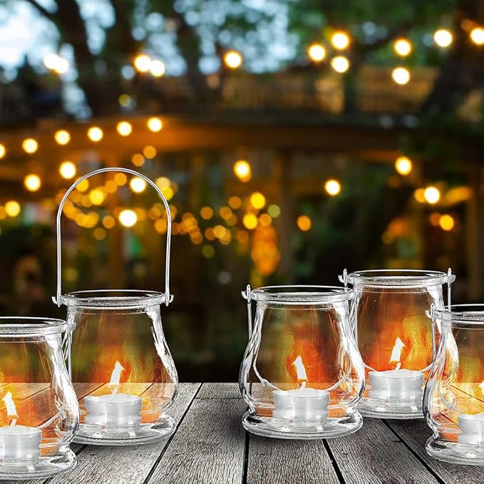 • Ambient Lighting: When lit, the Hanging Glass Tea Light Holders provides soft, ambient lighting that enhances the mood of any room. The gentle glow of the candlelight creates a cozy and relaxing atmosphere, for unwinding after a long day