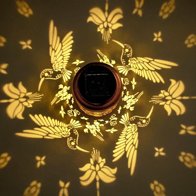 • 【Excellent Gift Options】This outdoor solar lantern hummingbird,and the light is projected on the table or ground to create a lifelike beautiful pattern,making your patio stand out.The outdoor lantern is perfect for indoors,backyards,porch,table,fence,walkways and pathway decorate. Makes a great Mother's Day,Father's Day,Thanksgiving,party,Valentine's Day,Easter,Birthday,Wedding Christmas gifts.