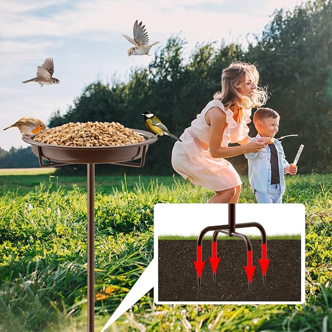 • 【Sturdy 4-pronged Base】 Bird bath with 4 solid prongs base adds more stability for this birdbath so that it is hard to bend, break or fracture, greatly enhance the stability of the product.You can inserted birdbath into the ground or lawn of patios and gardens.