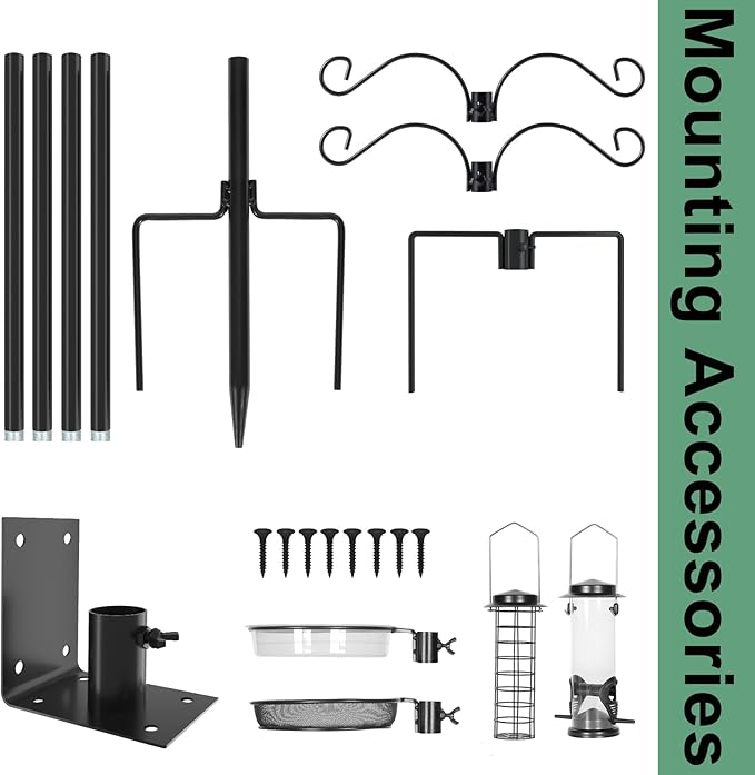 • FUNCTIONAL POLE SET: Our bird feeder stand comes with 2 pair hooks, 2 feeders, bird bath support ring and bird bath, micro mesh feeder tray, and heavy duty house pole