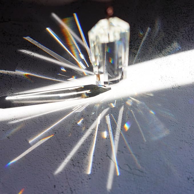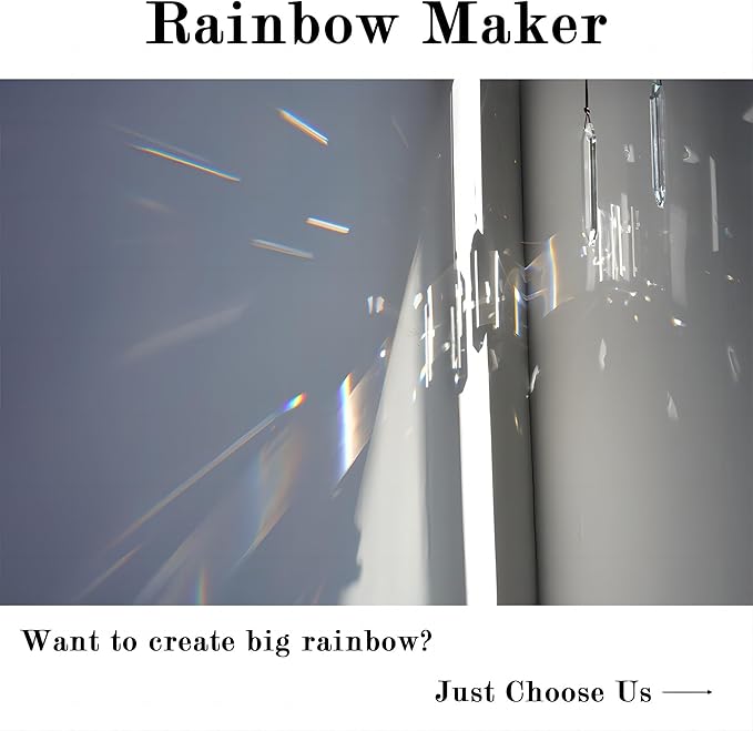 • Rainbow Maker Prisms: 2pcs crystal light catcher are made by hand, size:4.7*1.1in(12*2.8cm),NW:95g/pc. These 120mm large crystal suncatchers will create stunning rainbows when sunlight passes through them, adding a magical touch to any space