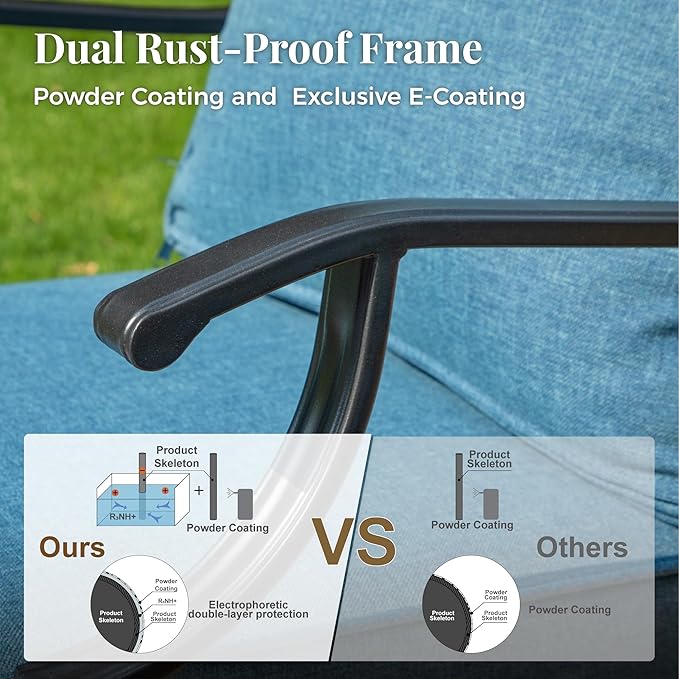 • 【RELIABLE ALL-WEATHER METAL CONSTRUCTION】Built from durable metal with E-COATING and POWDER-COATING finish, ensuring resistance to all weather conditions, rust-proof qualities, and easy maintenance. The sturdy wrought iron frame can withstand various weather conditions, with the single chairs supporting up to 350 lbs and the 3-seater sofa accommodating up to 900 lbs, promising long-lasting reliability and durability