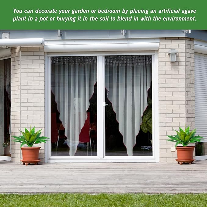 • About The Large Fake Plants Color: natural green, replica of the real agave color, delicate and durable, outdoor sun protection.Low Maintenance Unlike real plants, these artificial agave planters require no watering, pruning, or fertilizing. faux succulent outdoor plant enjoy the beauty of greenery without the hassle of maintenance.