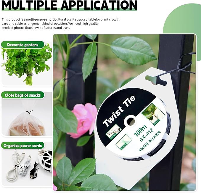 • SUPERIOR MATERIAL: The garden wire is made of high-quality black PE coating with iron wire inside. Its flexibility is very high, you can easily use to tie plants or other things. It is very durable and will not rust or break.