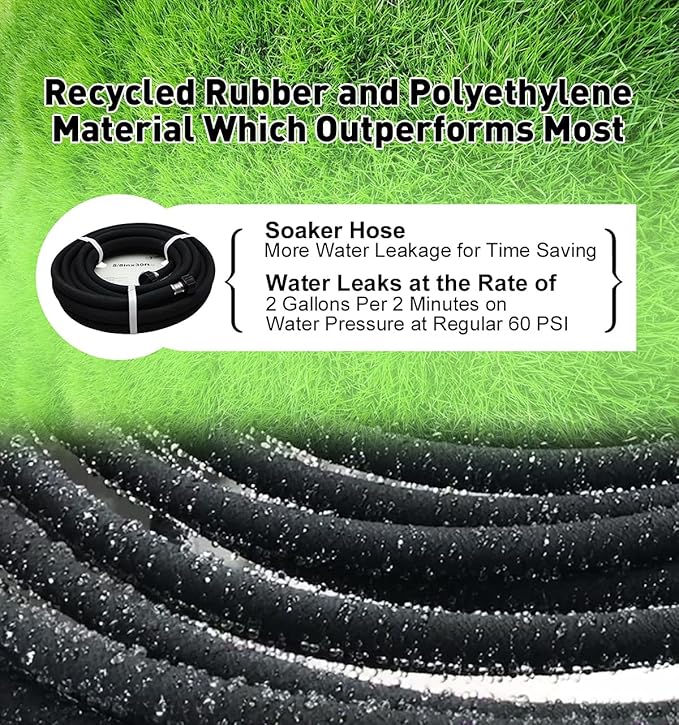 • LIGHTWEIGHT AND DURANLE:The lightweight soaker hose easy to maneuver around plants, so you can maintain even the most ambitious landscaping project without dragging a heavy garden hose around.