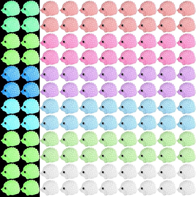 Hiboom 120 Pcs Luminous Mini Hedgehog Figurines Hedgehog Miniature Garden Ornaments Glow in Dark Mini Resin Figures Tiny Animal Figurines Bulk for Garden Micro Landscape Plant Moss DIY Fairy Decor