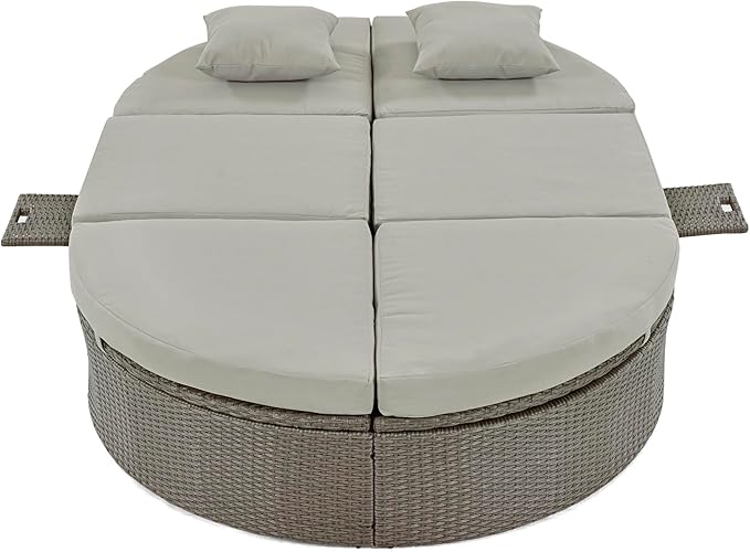 • 💗 Trays on Both Sides: This outdoor patio daybed features a thoughtful design with foldable cup trays on both sides, each measuring 9.6x7.9 inches. These convenient trays serve as perfect holders for items such as chilled beverages or cell phones, making them easily accessible. With a weight capacity is 22 lbs.