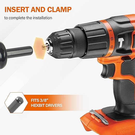 • FOR 3/8'' HEX DRILL DRIVER: The garden drill bit auger will work with most 3/8" or larger chucked drill, 18V or greater drill is recommended. The pointed triangle bit of the auger drill bit has a small hole on it for easily hanging storage when not in use.
