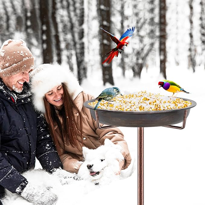 • 【Multi-Functional Bird Bath Bowl】 The metal bird bath is multi-purpose. The outdoor bird feeding tray can be used as a bird bathing or bird feeder according to your needs, attracting charming birds to your backyard to bath or share a feast; Outdoor garden bird bath is a perfect present for nature lovers, wild bird watchers and friends who love small animals will enjoy.