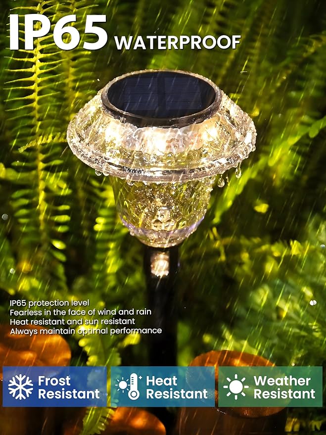 • 【Versatility】This solar pathway lights is perfect for walkway, garden, patio, flower pots, driveway, porch. It offers ample lighting and decorative ambiance. This landscape lighting is an ideal gifts for mom、friends or house warming and birthday