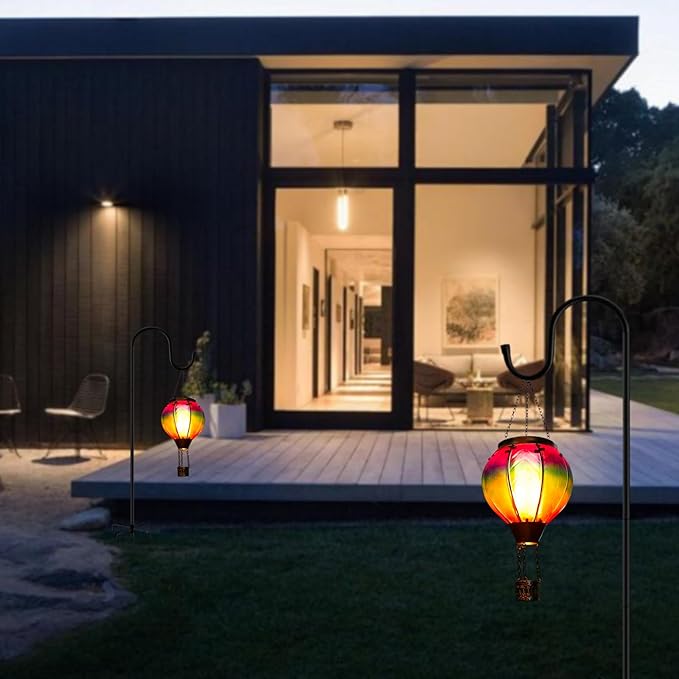• 【Solar-Powered】Outdoor solar lanterns absorb sunlight during the day and automatically light up at night, providing 6-8 hours of lighting. The soft and warm light of hot air balloon solar lantern creates a romantic and peaceful atmosphere for the outdoor space.