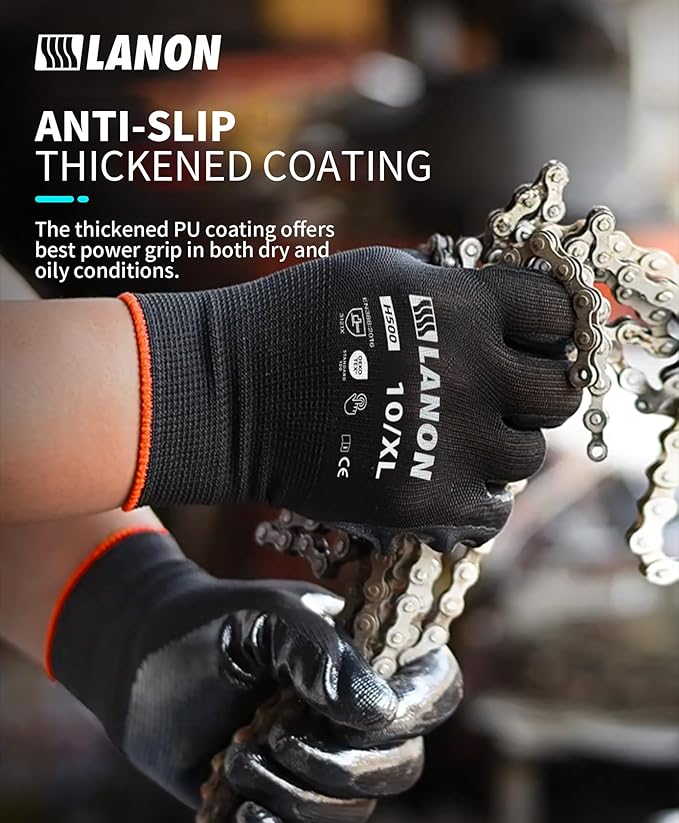 • Next-level Performance - LANON work gloves are certificated by CE, with Standards EN 388:2016, EN 420, and meet CA Prop.65 regulations for phthalates. We guarantee your 100% satisfaction with our products. If you are not satisfied with our products, please feel free to contact us and we will provide free returns or size exchanges.