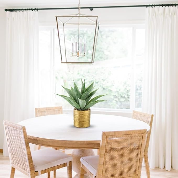 • [High-quality Artificial Agave Plant]-12.2" faux aloe vera leaves are elegantly arranged in a sturdy, shiny gold-plated brushed pot and surrounded by natural stone pebbles. The overall height of faux potted plant is about 13". Luxurious pot: 4.3" W x 4 .5" H.