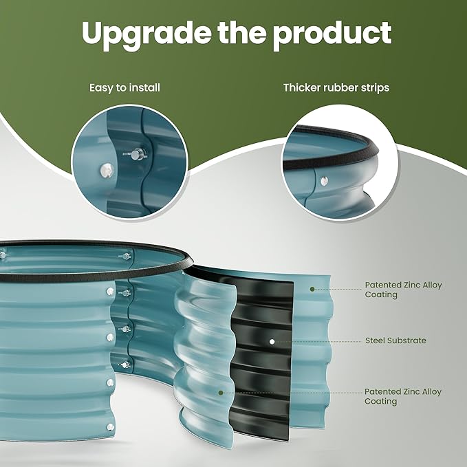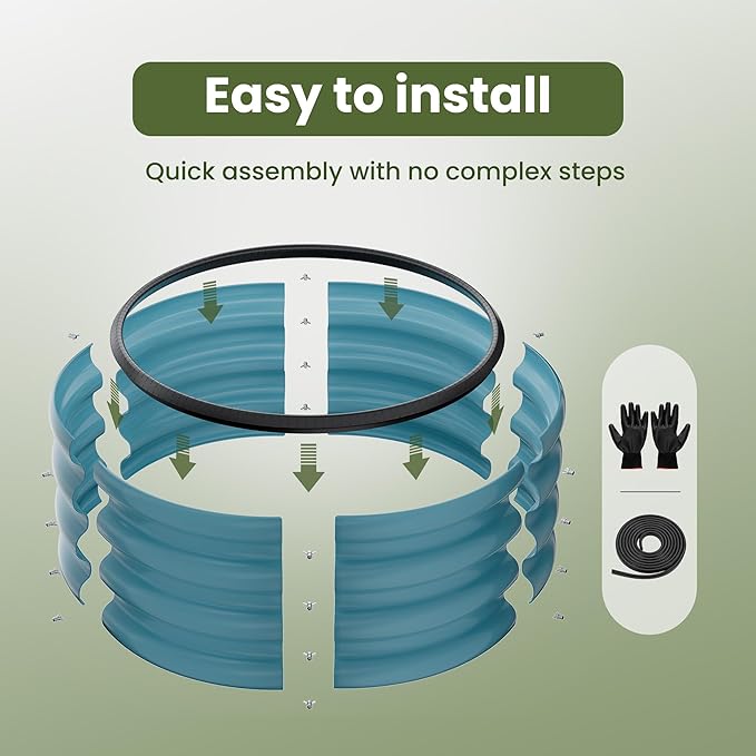 ZXZYHFTY Round Galvanized Raised Garden Bed kit, Blue Outdoor Garden Raised Planter Box, Round Large Metal Raised Garden Beds for Vegetable 2 * 2 * 1ft 1 Pack