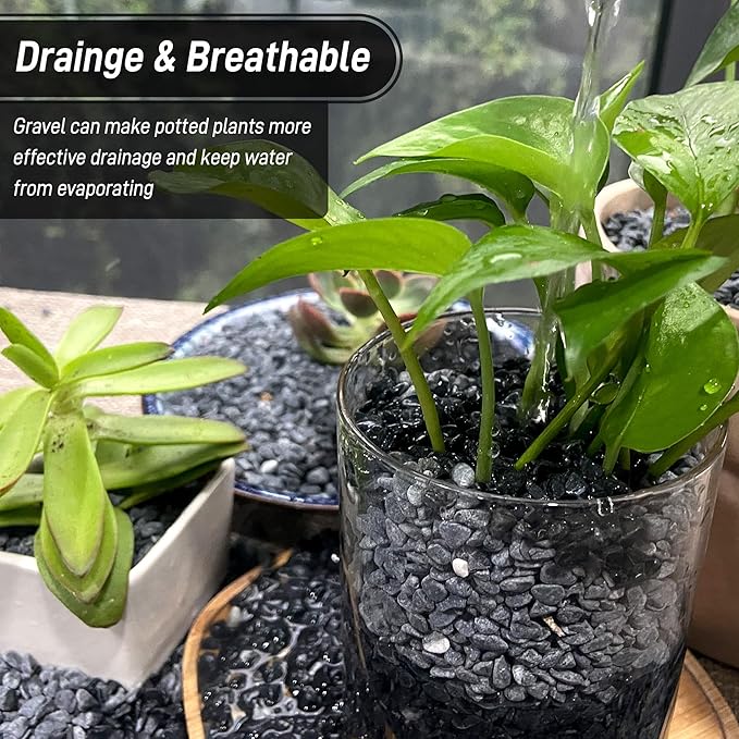 • 【Gravel for Plants】Dual-Layer Drainage Gravel for Healthier Plants. Top or Bottom Use: Layer on soil surfaces to reduce evaporation or place at pot bottoms to prevent root rot from overwatering.