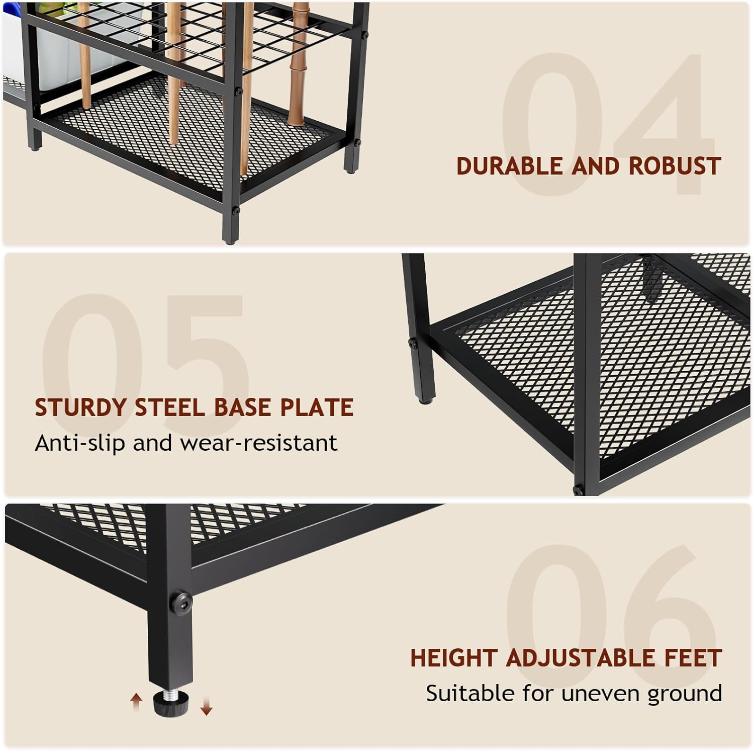 • 【Keep it tight, no more falling】: Paralleled up-down slots help keep sticks straight, ensuring most of your garden equipment remains in one spot without falling over. The bottom flow-through grate prevents standing water.