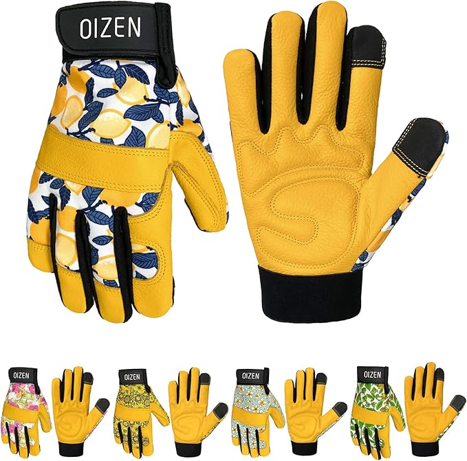 Cowhide Leather Thorn Proof & Puncture Resistant Gardening Gloves for Women and Men, Touchscreen Compatible Working Gloves for Weeding, Digging, Planting, Gardening Gifts for Women (Small)