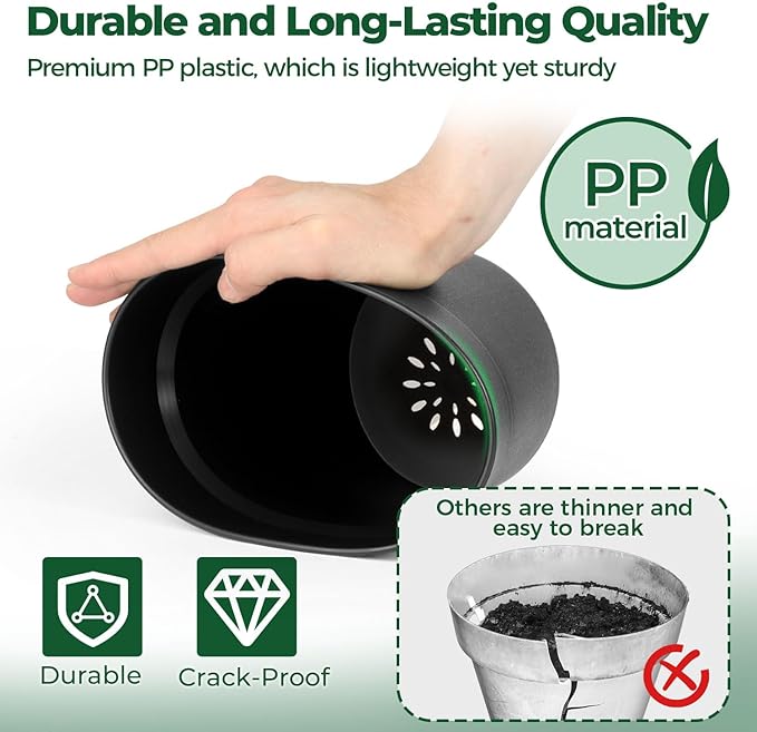 • 🌱【Durable & Lightweight Plastic Pots】T4U flower pots Made from premium plastic, these plastic pots are lightweight yet tough enough to withstand drops and outdoor elements, offering long-lasting support for your plants year-round