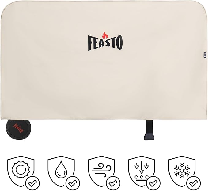 • Thick and Premium Cover: The heavy oxford cloth with PVC coated lining material allows the cover to be used all year round in the yard, waterproof, sun resistant, wind resistant and snow protection.Two oxford cloth handles by sides provides a convenient removal when using the table. Also quiet obvious when covering back to the cart by recognizing the side position
