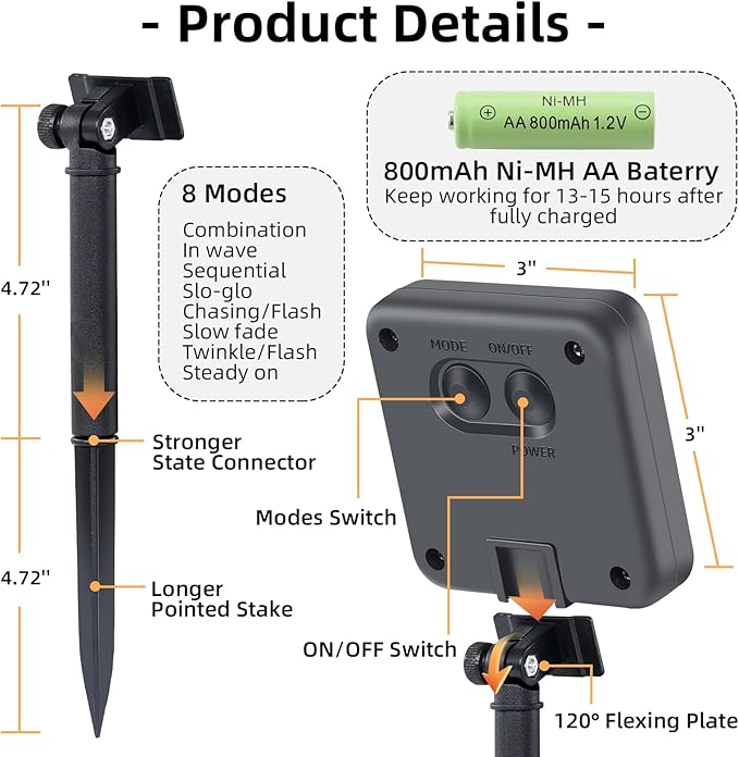 • 🌟【Simplified settings】: Easy installation and convenient operation. These solar lights outdoor decorative are designed wirelessly, eliminating the need for complex wiring. Simply place the solar panel in a sunny area and fix the light string in the desired position. In addition, we also provide detailed installation guides and customer service support to ensure that you can easily complete the setup and enjoy a beautiful lighting experience.