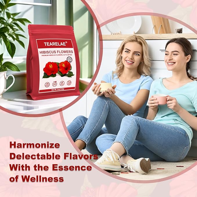 TEARELAE - Hibiscus Flowers, 5oz/142g- Natural Hibiscus Tea Loose Leaf - Country of Origin Nigeria - Flor De Jamaica - Dried & Edible Flowers For Tea - Non-GMO - Caffeine-free - Support Heart Health