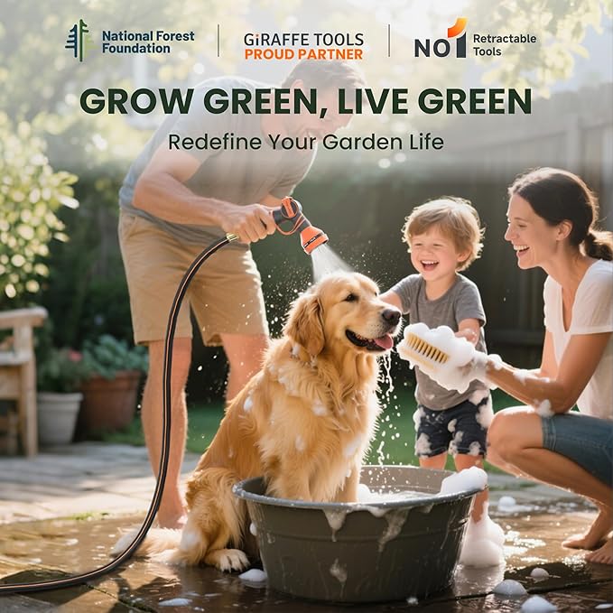 • Lock at Any Length: A 155-foot hybrid hose that can be locked to any length is pre-installed on the Giraffe hose reel, ensuring that every area of your garden is covered.