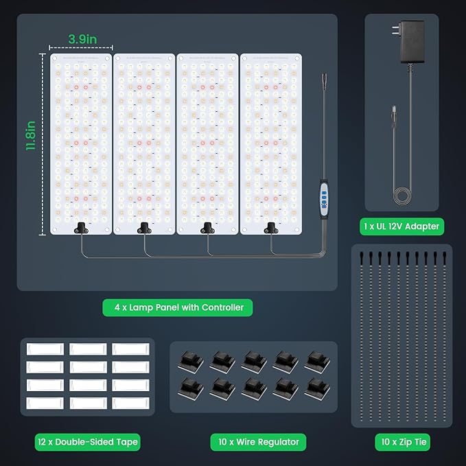 • [Wider Light Area]: This plant light single panel measures 11.8in x 3.9in, made of pure aluminium alloy, larger light area and better heat dissipation. Suitable for various scenes, such as plant stands, walls, cabinets and so on