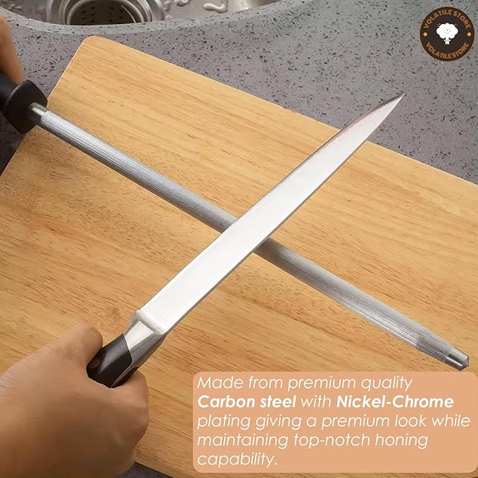 Generic Professional Knife Sharpening Rod - 12-Inch Carbon Steel Sharpening Rod (Black)