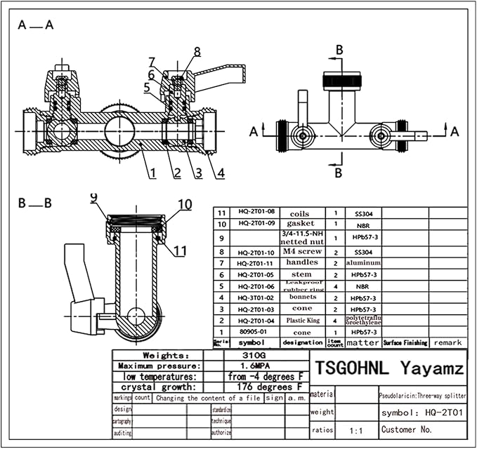 • 1: It is made of high quality brass, heavy-duty, rugged brass construction ensures that it is durable and will remain intact from -4 degrees F to 176 degrees F. It has a maximum working pressure of 1.6 MPA and weighs 0.68 lbs.