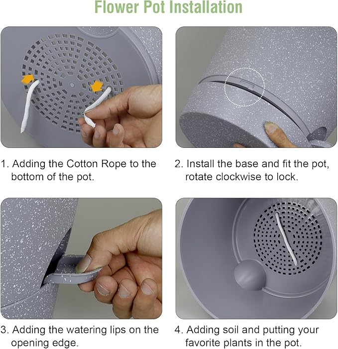 • 【Self-Watering Design】 Self-watering pots is includes a water reservoir at the bottom of the planter. This flower pots automatically supplies water to your plants as needed by a cotton rope, reducing the frequency of watering and ensuring your plants never go thirsty. The reservoir design also helps maintain a consistent moisture level, fostering optimal growth conditions.