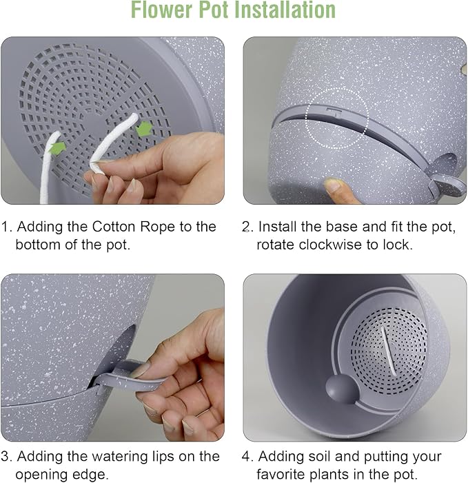 • 【Self Watering Design】 Self watering pots is includes a water reservoir at the bottom of the planter. This flower pots automatically supplies water to your plants as needed by a cotton rope, reducing the frequency of watering and ensuring your plants never go thirsty. The reservoir design also helps maintain a consistent moisture level, fostering optimal growth conditions.