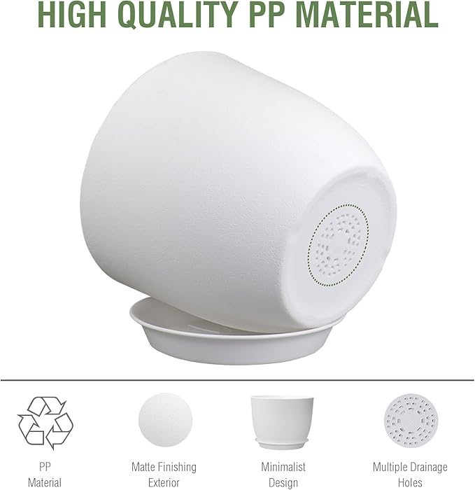 • 【Drainage Holes and Trays】Plant pot features well-designed drainage holes at the bottom to ensure proper water flow. Additionally, saucers catch excess water, keeping your growing area clean and tidy while also ensuring that your plants remain hydrated without becoming waterlogged.