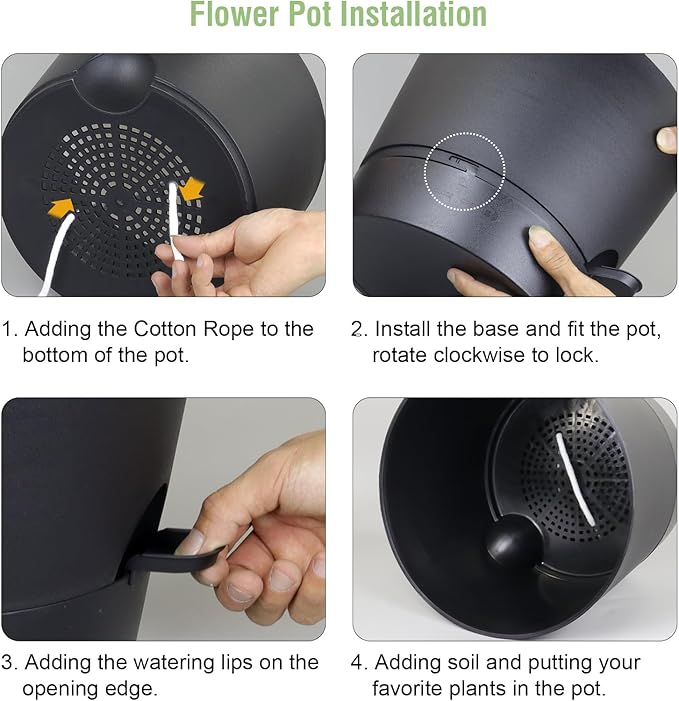 • 【Self-Watering Design】 Self-watering pots is includes a water reservoir at the bottom of the planter. This flower pots automatically supplies water to your plants as needed by a cotton rope, reducing the frequency of watering and ensuring your plants never go thirsty. The reservoir design also helps maintain a consistent moisture level, fostering optimal growth conditions.