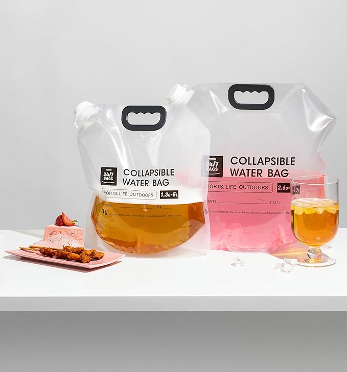 24/7 BAGS 8 Pack Collapsible Water Container Bag 1.3 Gallon/5 Liter, Heavy Duty with Carry Handles, Hikes, Trips, Weather Emergencies, and More, Foldable Water Bag