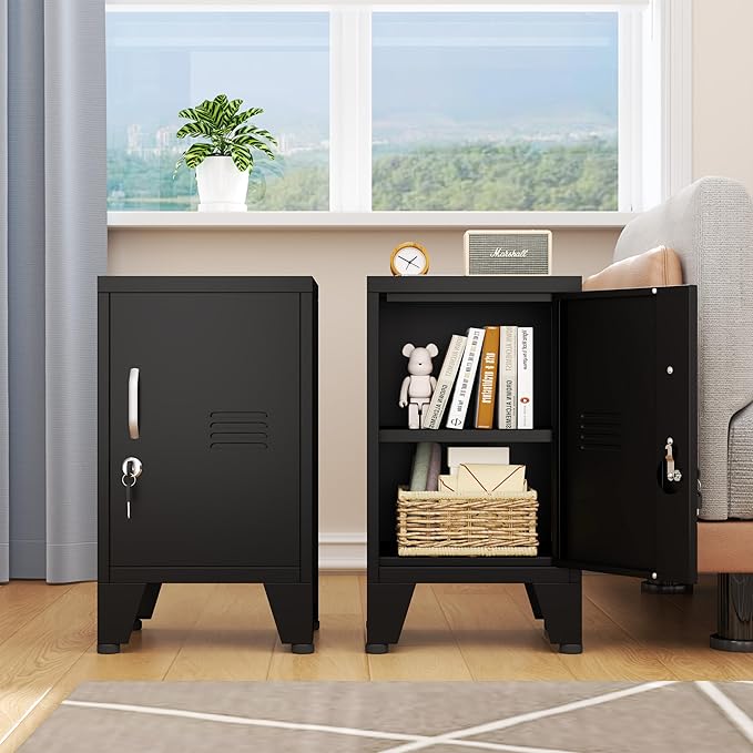 24.4" H Black Metal NightStand Locker Storage Cabinet with 1 Doors, File Cabinet with Shelves, Storage Cabinet with Adjustable Leveling Foot for Home Office Living Room or Bed Room