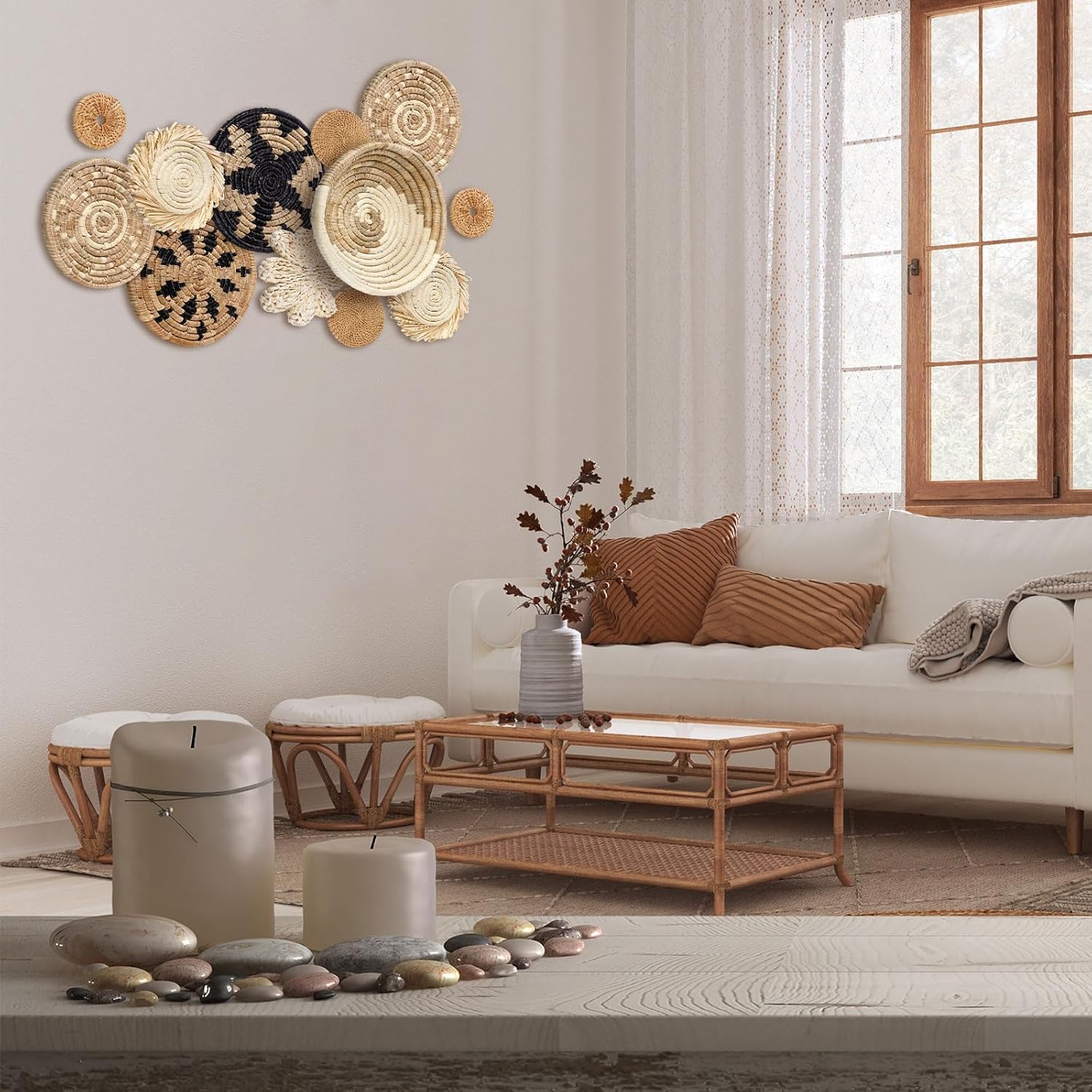 • Wide Applications: boho basket wall decor set as placemats, or as decorative baskets to store toys and accessories, the rustic basket wall art is suitable for many occasions, such as hotels, restaurants, living rooms, bedrooms, schools, stores, offices, dorms, shops,Christmas and more, they bring a comfortable, farmhouse feel to your space, bringing you an elegant and classic feeling