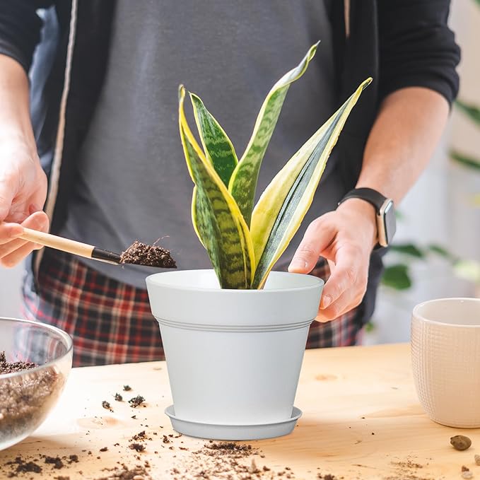 • 【Drainage Holes and Trays】Each plant pot features well-designed drainage holes at the bottom to ensure proper water flow. Additionally, saucers catch excess water, keeping your growing area clean and tidy while also ensuring that your plants remain hydrated without becoming waterlogged.