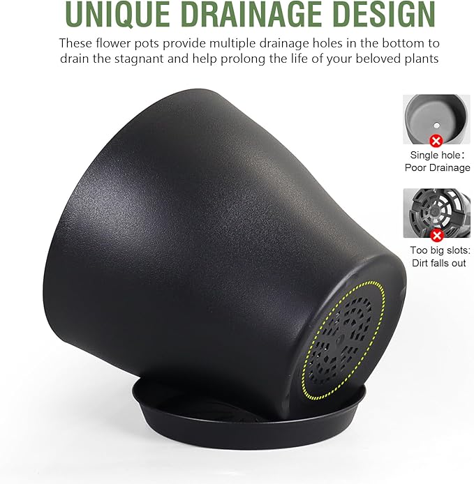 • 【Lightweight and Durable】Crafted from high-quality plastic, these flower pots are both lightweight and incredibly durable. They are designed to withstand everyday wear and tear, making them a reliable choice that won’t easily break or crack, even with regular use.