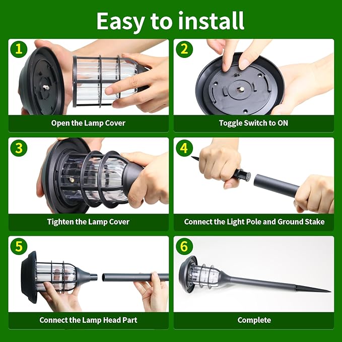 • LONG-LASTING LIGHTING: Turn on the ON switch and let the panel shine for more than 6 hours in a sunny, unobstructed place. After fully charged, the garden solar light will maintain long-lasting lighting and flashing at night