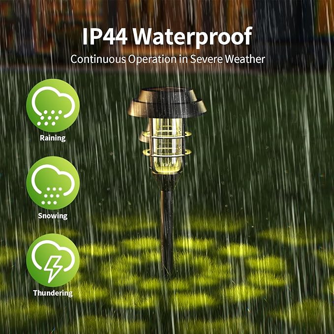 • WATERPROOF SHELL: The shell of the solar outdoor lights is made of artificially poured waterproof glue, and you don’t need to worry about the impact of rain, snow or bad weather on the solar outdoor light