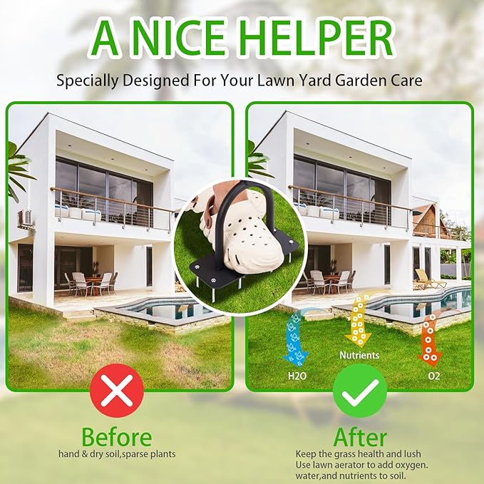 • A Solution for Compact Lawn Soil -- Manual lawn plug aerators help to loosen soil and reduce soil compaction. It can permit nutrients, oxygen and water to penetrate into plant roots effectively and help plants grow better.
