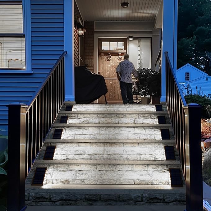 • Function and Pacticality:JOFIOS solar step lights Illuminate your every step, providing visibility to every inch of your staircase, allowing you to see clearly at night and navigate safely. Our step lights enhance the overall aesthetics of your steps and yard. Compared to regular outdoor step lights, upgrading to our premium solar-powered stair lights combines both appearance and functionality,Adding light to the night.